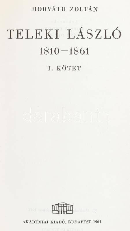 Dr. Horváth Zoltán: Teleki László I-II. Bp., 1964. Akadémiai Kiadó, Kiadói egészvászon kötésben, papír védőborítóval Csak 750 pld!