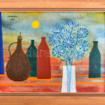 Drégely László (1932-1990): Csendélet. Olaj, farost, jelezve balra fent, fakeretben, 27×37 cm<a href="https://www.darabanth.com/hu/gyorsarveres/438/kategoriak~Festmenyek-es-grafikak/Festmenyek-es-grafikak~500001/Dregely-Laszlo-1932-1990-Csendelet-Ol