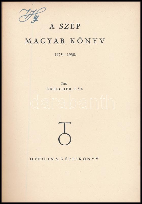 Drescher Pál: A szép magyar könyv. 1473-1938. Officina Képeskönyvek. Bp.,1938, Officina. Számos illusztrációval. Kiadói kartonált papírkötés, kopott borítóval, javított, sérült gerinccel.
