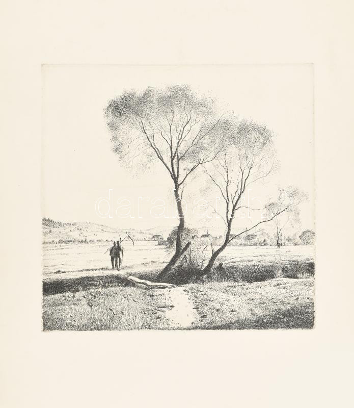 Dudás Jenő (1900-1991): Fűzfák. Rézkarc, papír, jelzés nélkül, hátoldalán feliratozott, lap bal oldalán apró lyukkal, 29×29 cm<a href="https://www.darabanth.com/hu/gyorsarveres/428/kategoriak~Festmenyek-es-grafikak/Festmenyek-es-grafikak~500001/Duda