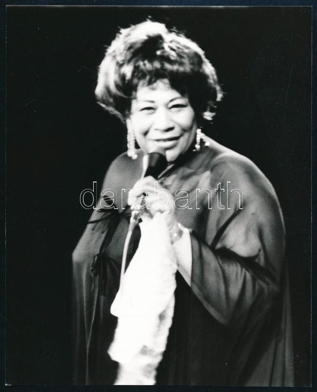 Ella Fitzgerald Budapesten 1970-ben, hátoldalon feliratozott sajtófotó, utólagos előhívás, 16×13 cm<a href="https://www.darabanth.com/hu/gyorsarveres/419/kategoriak~Fotomuveszet/Foto~500023/Ella-Fitzgerald-Budapesten-1970-ben-hatoldalon-feliratozott