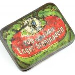 Engel gramofontű fémdoboz tartalommal, kopott