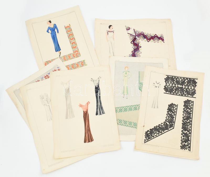 Engi Mária: 8 db divatterv, ornamentika, vegyes technika. papír, jelzett, 30x42cm<a href="https://www.darabanth.com/hu/gyorsarveres/416/kategoriak~Festmenyek-es-grafikak/Festmenyek-es-grafikak~500001/Engi-Maria-8-db-divatterv-ornamentika-vegyes-tech