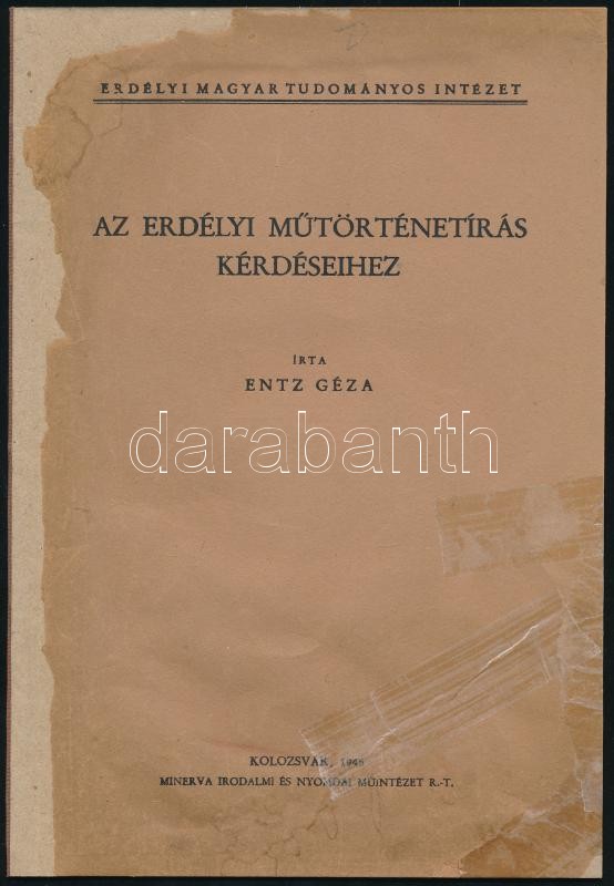 Entz Géza 3 db tanulmánya: Az erdélyi műtörténetírás kérdéseihez; Kolozsvár környéki kőfaragó műhely a XIII. században. Erdélyi Tudományos Intézet. Kolozsvár, 1945-1946, Minerva. Kiadói papírkötés, helyenként kis