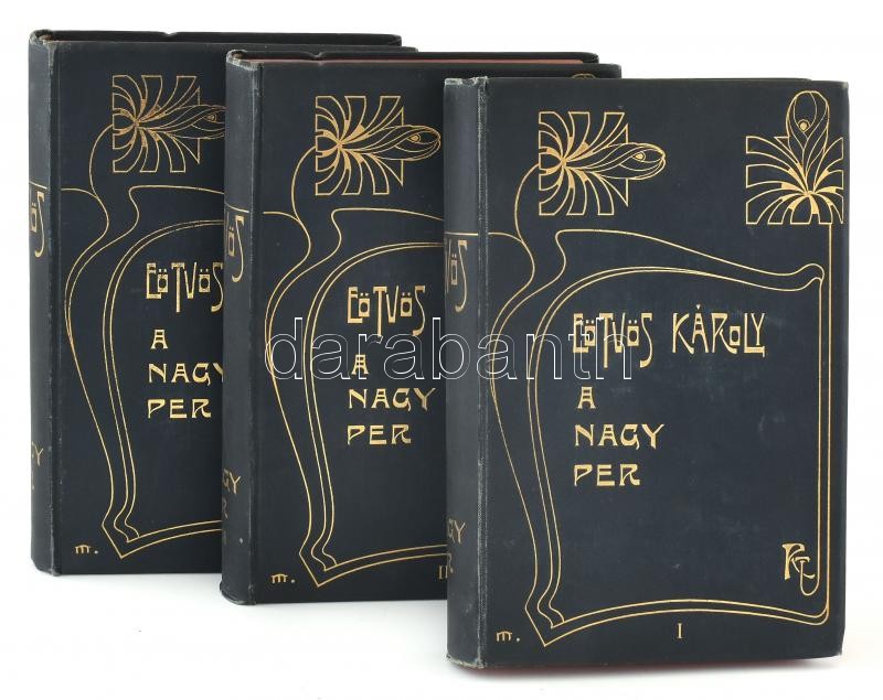 Eötvös Károly: A nagy per I-II-II. Bp., 1904, Révai, Kiadói egészvászon kötés, színezett lapszélek, kissé kopottas állapotban.<a href="https://www.darabanth.com/hu/gyorsarveres/415/kategoriak~Konyvek/Konyvek-Egyeb-ritkasagok~1500025/Eotvos-Karoly-A-