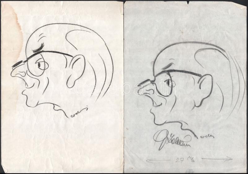 Erdei Sándor (1917-2002): össz. 14 db portré karikatúra. Ceruza, papír, többségében jelzett. 31×21 cm körüli méretben (13 db) és 18×13 cm (1 db). Részben a Sportfogadás c. lapnak készült rajzok, egyik a lap nevével feliratozott.<a href="https://www.