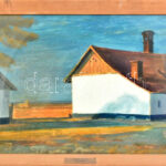 Erdős Péter (1938-): Tanya vége, Hódmezővásárhely. Olajtempera, farost, jelzett, hátoldalán autográf felirattal, üvegezett fakeretben, 55×100 cm. KIZÁRÓLAG SZEMÉLYES ÁTVÉTEL, NEM POSTÁZZUK! / ONLY PERSONAL COLLECTION AT OUR OFFICE!<a href="https://w