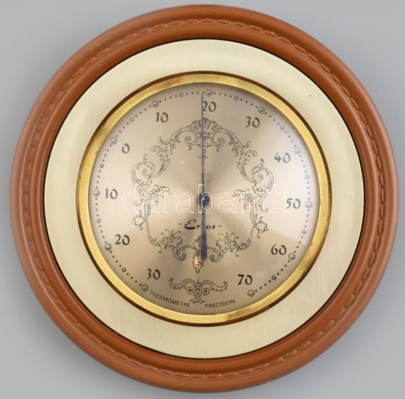 Erref francia fali thermométer (hőmérő), bakelit, fém, műanyag, kis kopásnyomokkal, d: 14,5 cm<a href="https://www.darabanth.com/hu/gyorsarveres/415/kategoriak~Mutargy-papirregiseg-egyeb/Bolhapiac~500012/Erref-francia-fali-thermometer-homero-bakelit