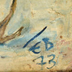16693. tétel:Bálint Endre (1915-1986): André Balint. 14 december - 10 januari 1958, Galerie Espace N.V. Klein Heilingland 36, Haarlem. Kiállítási plakát. Litográfia, papír. Jelzés nélkül. Bálint Endre 1958-ban rendezett hollandiai egyéni kiállításának plakátja, saját illusztrációjával. Lapszéli apró sérülésekkel és javított szakadásokkal. 59,5×46 cm. Ritka!