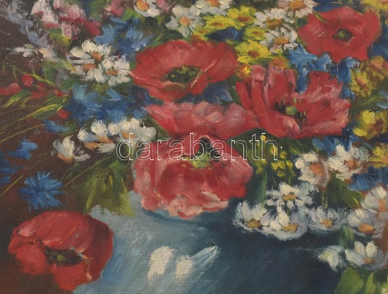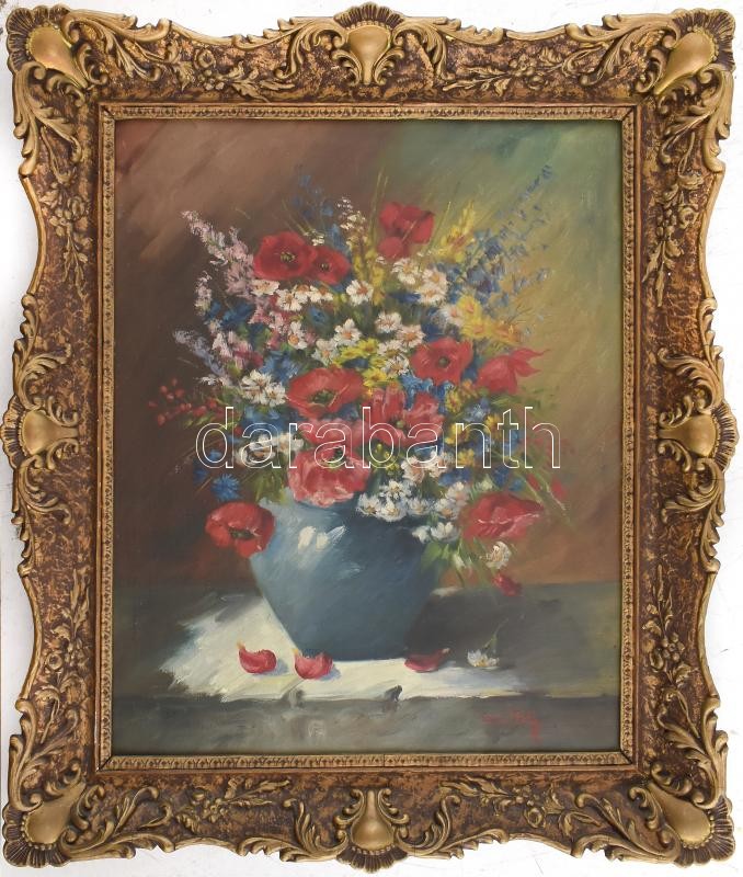 Etei Tóth Mihály (?-?), működött a XX. sz közepén és második felében: Csendélet. Olaj, vászon. Dekoratív fakeretben, 50×40 cm<a href="https://www.darabanth.com/hu/gyorsarveres/415/kategoriak~Festmenyek-es-grafikak/Festmenyek-es-grafikak~500001/Etei-