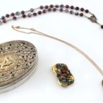 Ezüstözött fém áttört ékszeres doboz, florális és hippokamposz motívummal, benne vegyes bizsuk. 8,5x14cm<a href="https://www.darabanth.com/hu/gyorsarveres/410/kategoriak~Mutargy-papirregiseg-egyeb/Bolhapiac~500015/Ezustozott-fem-attort-ekszeres-dobo