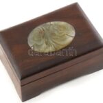Fadoboz, tetején faragott jáde berakással, mahagóni, jelzés nélkül, kopásnyomokkal, 13x9x6,5cm<a href="https://www.darabanth.com/hu/gyorsarveres/414/kategoriak~Mutargy-papirregiseg-egyeb/Bolhapiac~500012/Fadoboz-tetejen-faragott-jade-berakassal-maha