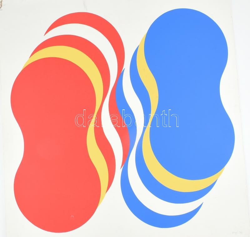Fajó János (1937-2018): Piskóták I., 1975. Szitanyomat, papír. Jelzett, számozott (15/28.). Sérült (kisebb lyukkal, lapszéli törésekkel). Lapméret: 70×70 cm<a href="https://www.darabanth.com/hu/gyorsarveres/426/kategoriak~Festmenyek-es-grafikak/Fest