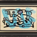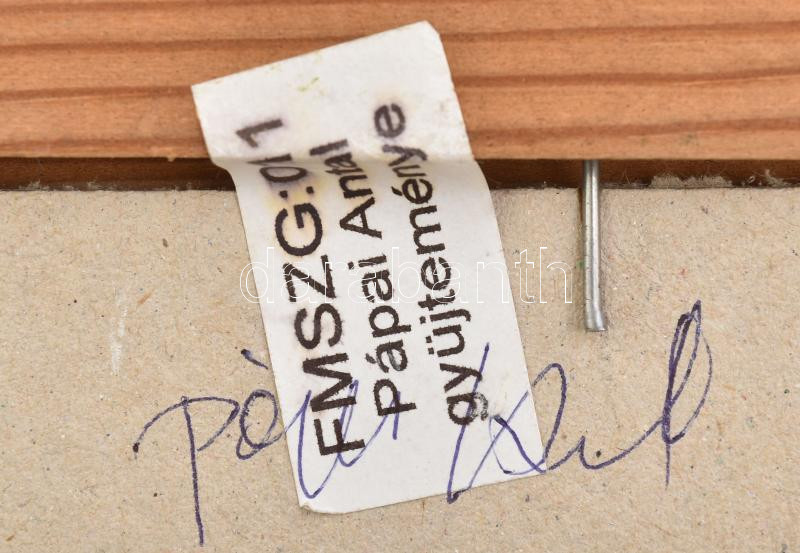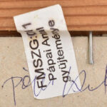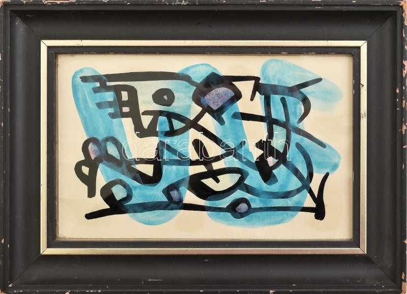 Farkasházy Miklós (1895-1964): Kompozíció. Vegyes technika, papír, jelzés nélkül. Hátoldalán Pápai Antal műgyűjtő címkéjével és szignójával, üvegezett keretben, 15×23 cm<a href="https://www.darabanth.com/hu/gyorsarveres/434/kategoriak~Festmenyek-es-