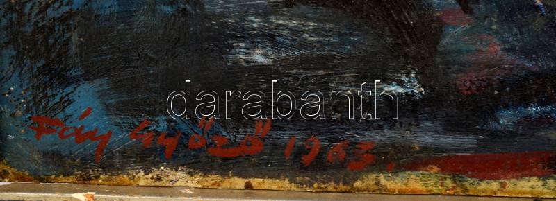 Fáy Győző (1918-2005): Csendélet. Olaj, vászon, jelzett. Dekoratív, kissé sérült fakeretben, 40×50 cm<a href="https://www.darabanth.com/hu/gyorsarveres/426/kategoriak~Festmenyek-es-grafikak/Festmenyek-es-grafikak~500001/Fay-Gyozo-1918-2005-Csendelet
