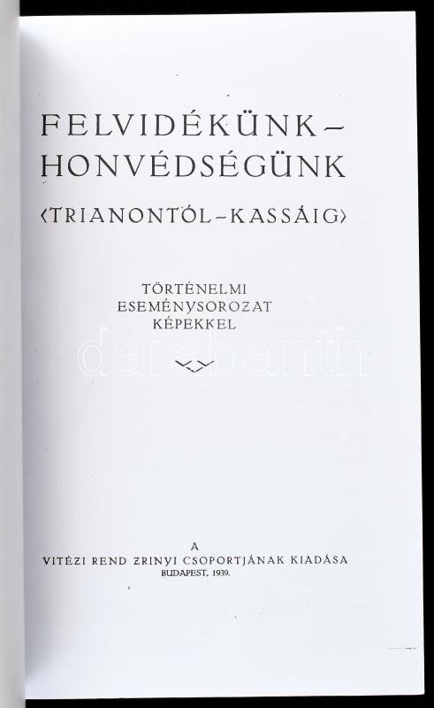 Felvidékünk-honvédségünk. (Trianontól-Kassáig). Történelmi eseménysorozat képekkel. H.n., é.n., Nemzeti Örökség Kiadó. Reprint kiadás. Fekete-fehér képekkel illusztrálva. Kiadói papírkötés, jó állapotban.