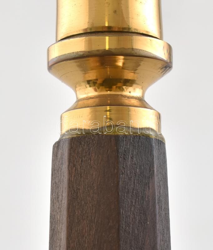 Fém gyertyatartó, fa baluszterrel, kopásnyomokkal, m: 30 cm<a href="https://www.darabanth.com/hu/gyorsarveres/421/kategoriak~Mutargy-papirregiseg-egyeb/Bolhapiac~500012/Fem-gyertyatarto-fa-baluszterrel-kopasnyomokkal-m-30-cm~II2675186/?utm_source=af