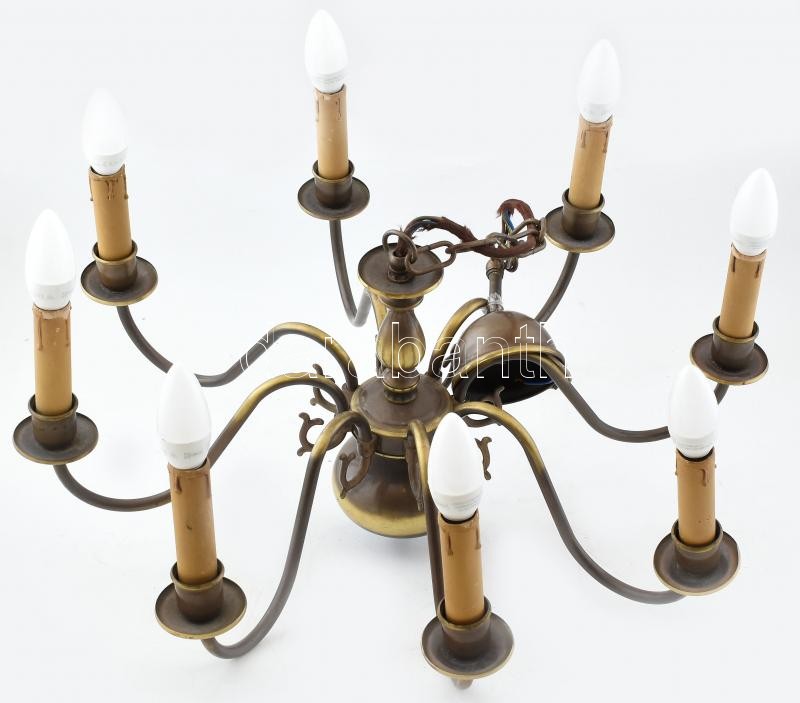 Flamand réz csillár, kopott, nincs kipróbálva, 8 égős, gyertyaizzós kivitelben, E14-es LED-es égőkkel. d:59cm<a href="https://www.darabanth.com/hu/gyorsarveres/411/kategoriak~Mutargy-papirregiseg-egyeb/Bolhapiac~505013/Flamand-rez-csillar-kopott-nin