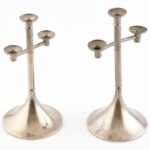 Fördős László (1938- ): Iparművész gyertyatartó pár. Fém, jelzett, kopásnyomokkal, m: 21 cm, 23 cm<a href="https://www.darabanth.com/hu/gyorsarveres/413/kategoriak~Mutargy-papirregiseg-egyeb/Bolhapiac~500012/Fordos-Laszlo-1938-Iparmuvesz-gyertyatart