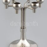 Fördős László (1938- ): Iparművész hatágú gyertyatartó. Fém, jelzett, az Iparművészeti Vállalat sérült zsűri címkéjével, m: 19 cm<a href="https://www.darabanth.com/hu/gyorsarveres/415/kategoriak~Mutargy-papirregiseg-egyeb/Bolhapiac~500012/Fordos-Las