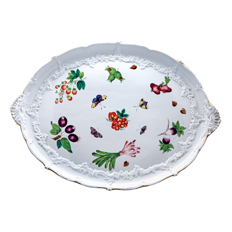 Tata, Fischer Mór és fia, 1890 körül, festett, aranyozott Meissen-i fehérporcelán, máz feletti koronás címer FDT jelzettel, felül jelzett Meisseni jel, 48*34, 5 cm