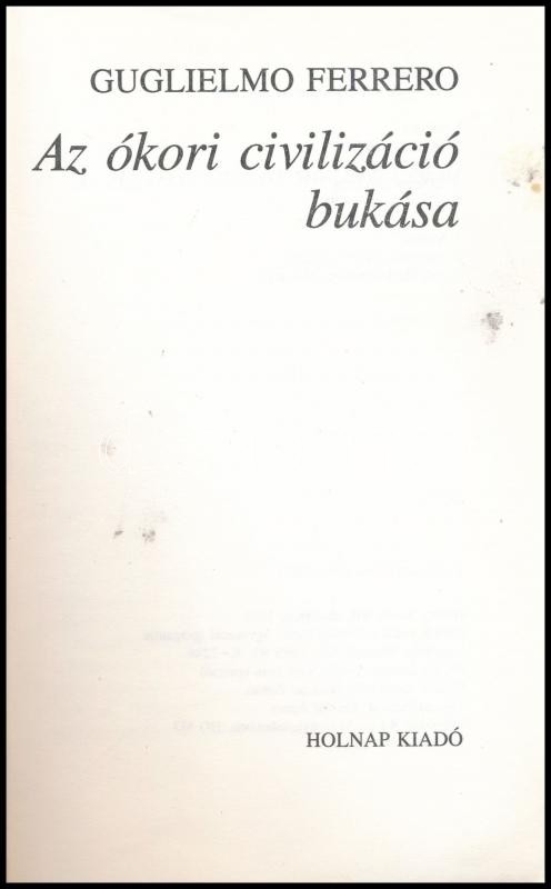 G. Ferrero: Az ókori civilizáció bukása. Bp., 1993. HOlnap. Kiadói papírkötésben