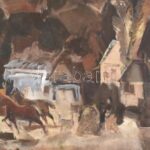 Gaál Imre Péter (1921-2013): Lovak. Olaj, farost, jelzett, 55×80,5 cm<a href="https://www.darabanth.com/hu/gyorsarveres/417/kategoriak~Festmenyek-es-grafikak/Festmenyek-es-grafikak~1/Gaal-Imre-Peter-1921-2013-Lovak-Olaj-farost-jelzett-55×80-5-cm~II2