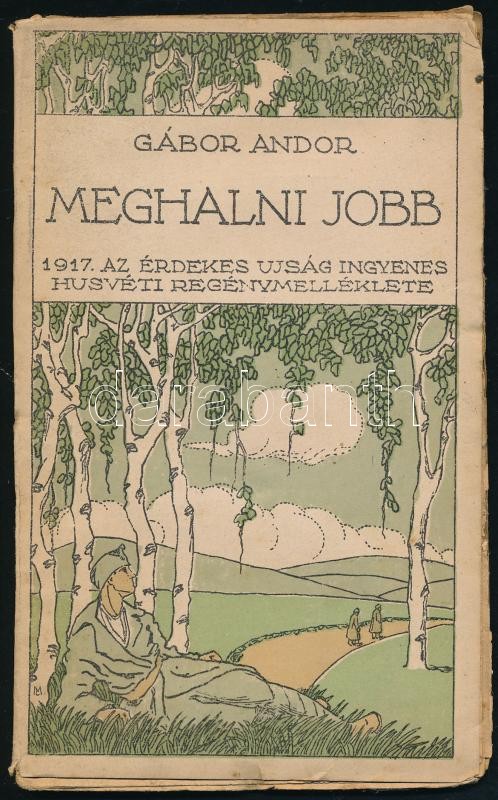 Gábor Andor: Meghalni jobb. 1917. Az Érdekes Ujság ingyenes húsvéti regénymelléklete. A borítón litografált illusztrációval (MC jelzéssel.) Bp.,1917, Légrády-ny., 48 p. Első kiadás. Kiadói illusztrált papírkötésben, kissé