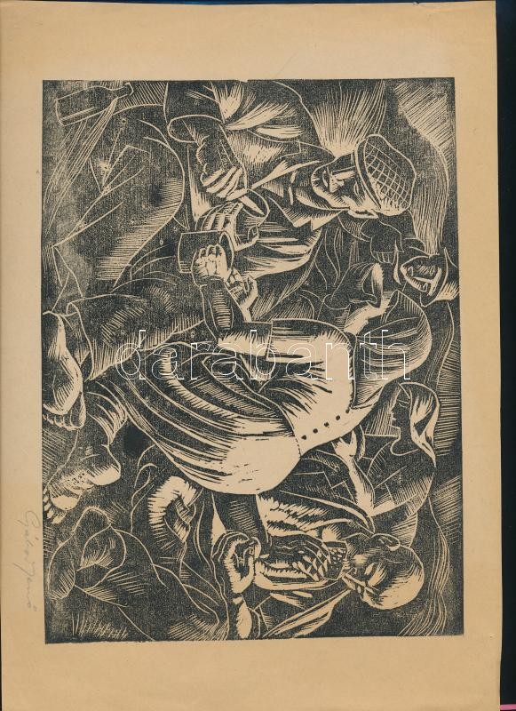 Gábor Jenő (1893-1968): Pihenő. Fametszet, papír. Jelzett. 18×23,5cm<a href="https://www.darabanth.com/hu/gyorsarveres/426/kategoriak~Festmenyek-es-grafikak/Festmenyek-es-grafikak~500001/Gabor-Jeno-1893-1968-Piheno-Fametszet-papir-Jelzett-18×23-5cm~