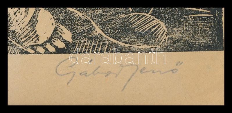 Gábor Jenő (1893-1968): Pihenő. Fametszet, papír. Jelzett. 18×23,5cm