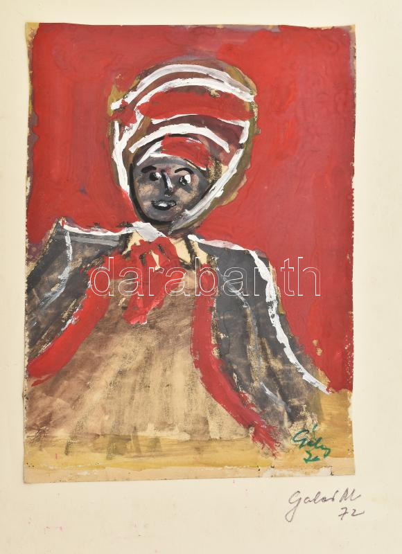 Gábor Marianne (1917-2014): Turbános nőalak. Tempera, papír. Jelzett, kartonra ragasztva, 21×15 cm<a href="https://www.darabanth.com/hu/gyorsarveres/430/kategoriak~Festmenyek-es-grafikak/Festmenyek-es-grafikak~500003/Gabor-Marianne-1917-2014-Turbano