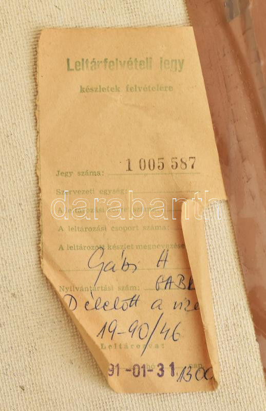 Gábri/Gábry Albert (1935-2004): Délelőtt a vízen. Olaj, farost, jelzés nélkül, hátoldalán autográf felirattal és címkén feliratozott, dekoratív fakeretben, 50×60 cm<a href="https://www.darabanth.com/hu/gyorsarveres/430/kategoriak~Festmenyek-es-grafi