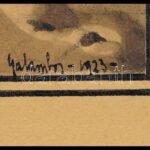 Galambos Margit (?-?): Mesebeli táj, 1923. Akvarell, ceruza, papír, jelzett, 15×13,5 cm