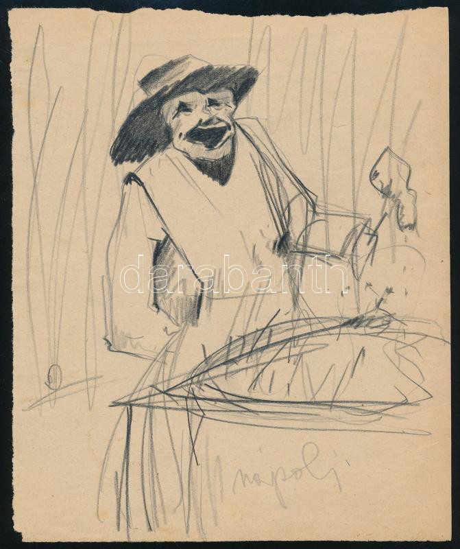 Galambos Margit (?-?): Nápolyi alak. Ceruza, papír, jelzés nélkül, középen lent autográf felirattal, lapszéli szakadással, 20,5×17 cm<a href="https://www.darabanth.com/hu/gyorsarveres/430/kategoriak~Festmenyek-es-grafikak/Festmenyek-es-grafikak~5000