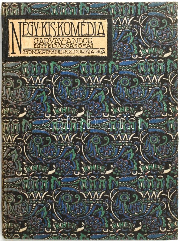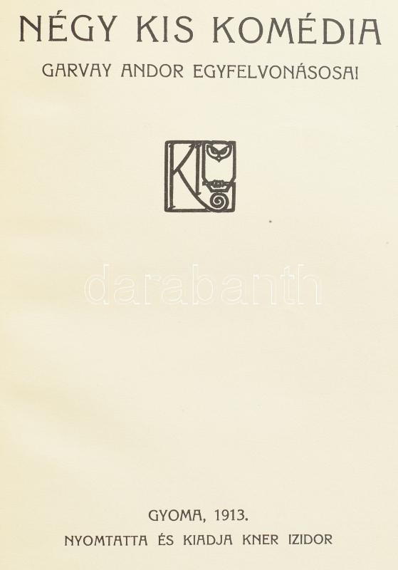 Garvay Andor: Négy kis komédia. Gyoma, 1913, Kner Izidor 101 p. + [7] p. Első kiadás. Kiadói festett egészvászon kötésben
