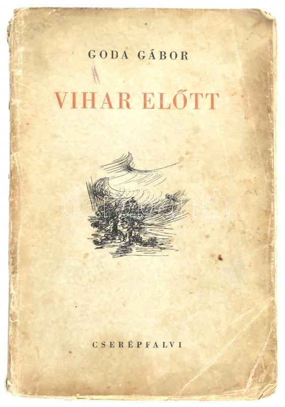 Goda Gábor: Vihar előtt. Bp., 1946. Cserépfalvi. Kiadói papírkötésben, sérült kötés.<a href="https://www.darabanth.com/hu/gyorsarveres/415/kategoriak~Konyvek/Konyvek-Egyeb-ritkasagok~1500025/Goda-Gabor-Vihar-elott-Bp-1946-Cserepfalvi-Kiadoi-papirkot