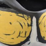 Gorka Lívia (1925-2011): Kaspó. Fekete, fehér és sárga mázakkal festett kerámia, jelzett, mázhibával, 17×14 cm, m:13 cm<a href="https://www.darabanth.com/hu/gyorsarveres/424/kategoriak~Porcelan-keramia-uveg/Keramiak~500005/Gorka-Livia-1925-2011-Kasp