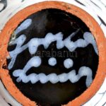 Gorka Lívia (1925-2011): Kaspó. Fekete, fehér és sárga mázakkal festett kerámia, jelzett, mázhibával, 17×14 cm, m:13 cm