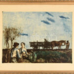 Görög Rezső (1930- ?): Pihenő (Olvashatatlan címmel). Színes rézkarc, papír, jelzett. Dekoratív, üvegezett fakeretben, 29×39 cm<a href="https://www.darabanth.com/hu/gyorsarveres/438/kategoriak~Festmenyek-es-grafikak/Festmenyek-es-grafikak~500001/Gor
