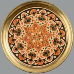 Görög zománcozott réz tál, kopásnyomokkal, 33 cm