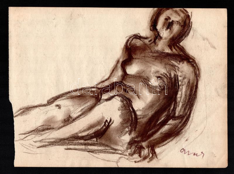 Gráber Margit (1896-1993): Fekvő női akt. Szén, papír, jelezve jobbra lent. Lap bal széle kissé sérült. 24×33 cm.<a href="https://www.darabanth.com/hu/gyorsarveres/437/kategoriak~Festmenyek-es-grafikak/Festmenyek-es-grafikak~500001/Graber-Margit-189