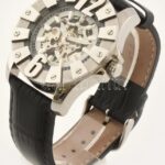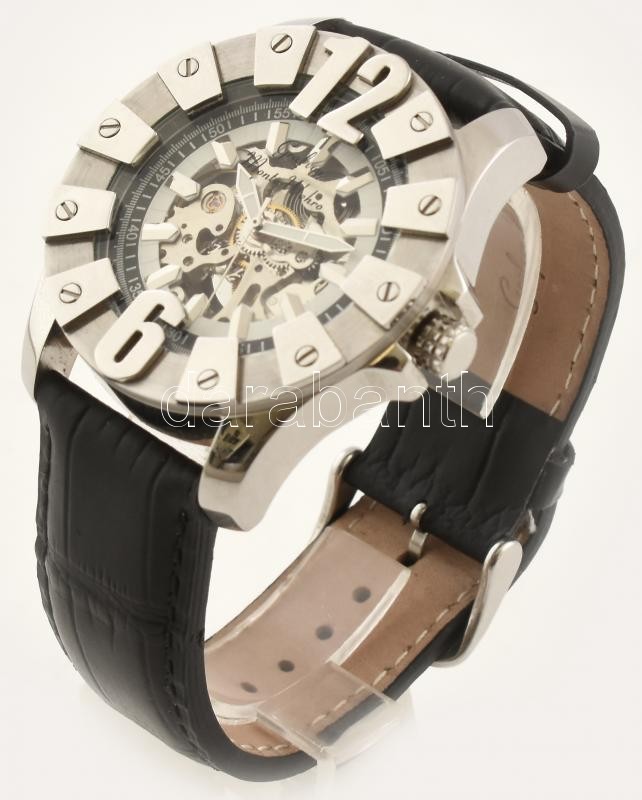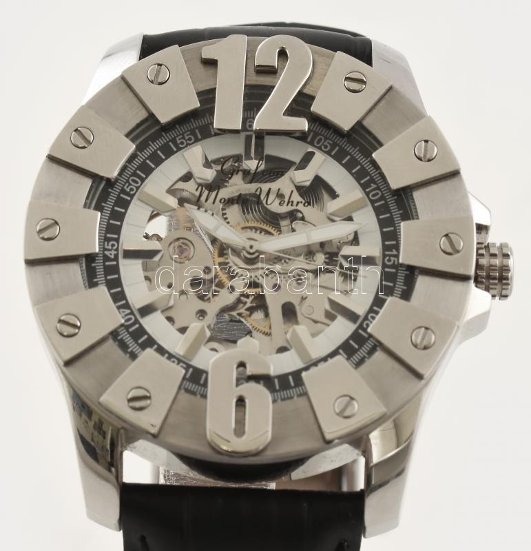 Graf von Monte Wehro férfi automata karóra, látványos üveg-acél tokkal, bőr szíjjal, jó állapotban, működik, kartondobozban, d: 4,5 cm<a href="https://www.darabanth.com/hu/gyorsarveres/417/kategoriak~Mutargy-papirregiseg-egyeb/Orak~10/Graf-von-Monte