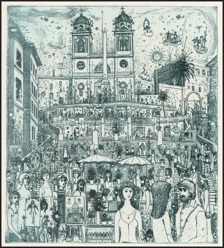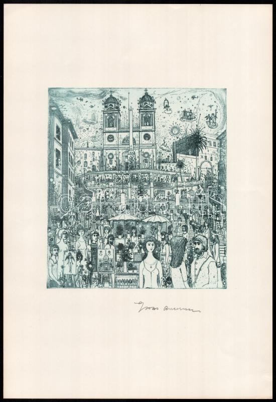 Gross Arnold (1929-2015): A Spanyol Lépcső Rómában. Ofszet nyomat, papír, jelzett, a Corvina mappából, 20×19 cm<a href="https://www.darabanth.com/hu/gyorsarveres/413/kategoriak~Festmenyek-es-grafikak/Festmenyek-es-grafikak~500001/Gross-Arnold-1929-2