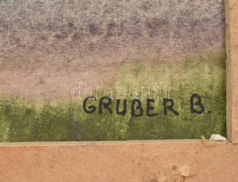 Gruber B jelzéssel: Utcarészlet. Akvarell, karton. Dekoratív, kissé sérült fakeretben. 29,5×43 cm<a href="https://www.darabanth.com/hu/gyorsarveres/417/kategoriak~Festmenyek-es-grafikak/Festmenyek-es-grafikak-jelzessel-jelzes-nelkul~2/Gruber-B-jelze