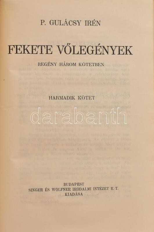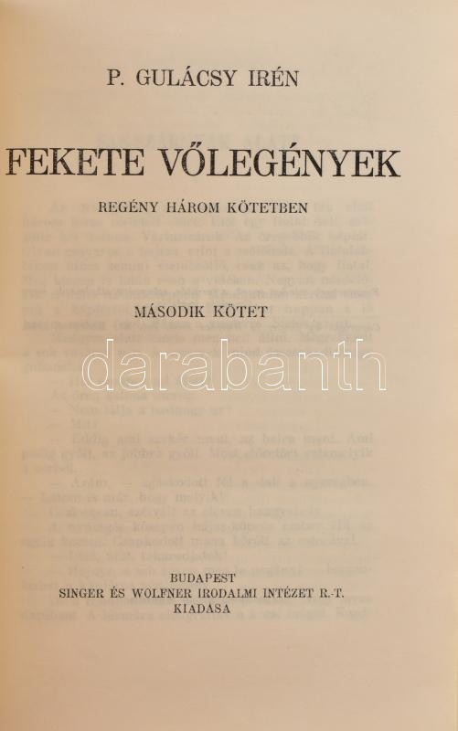 ![Gulácsy Irén: Fekete vőlegények. Regény három kötetben. I-III. köt. [Egykötetben.] Bp., 1930, Singer és Wolfner, 221+281+236+2 p. Kiadói aranyozott egészbőr-kötésben, kissé kopott borítóval, kissé sérült gerinccel, az I. - Image 3](https://mutargy.com/wp-content/uploads/2025/02/2376913b.jpg)