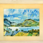 Gulyás Dénes (1927-2003): Balaton, Tihany, 1974. Akvarell, papír, jelezve jobbra lent, hátoldalán Képcsarnok Vállalat címkéjével, üvegezett fakeretben, 38×47,5 cm<a href="https://www.darabanth.com/hu/gyorsarveres/437/kategoriak~Festmenyek-es-grafika