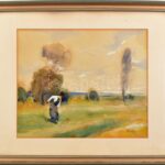 Gulyás Sándor (1889-1974): Nyári munka. Akvarell, papír. Jelzett. Üvegezett, kopott fakeretben. 37×45 cm<a href="https://www.darabanth.com/hu/gyorsarveres/424/kategoriak~Festmenyek-es-grafikak/Festmenyek-es-grafikak~500001/Gulyas-Sandor-1889-1974-Ny