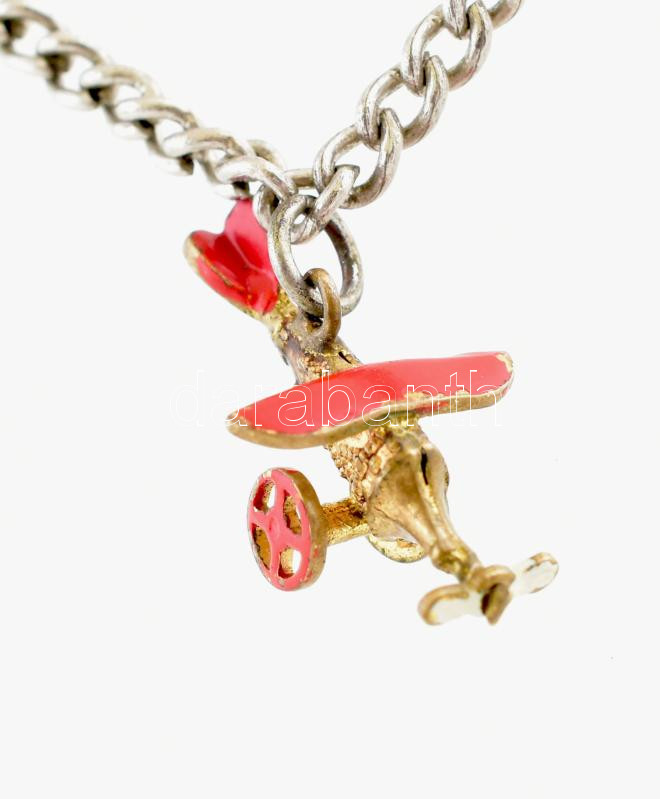 Gyermeknyaklánc, fém, réz repülő medállal, h: 22 cm