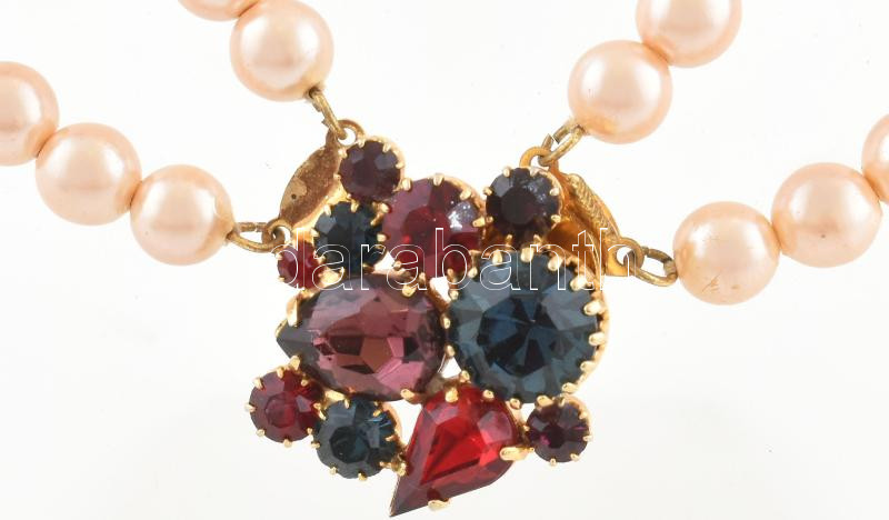Gyöngy nyaklánc, díszes üveg ékítésekkel. h: 43 cm