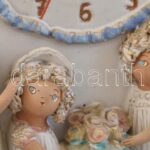 Győrbíró Enikő (1932-1999): Figurális óra, festett kerámia, jelzett, hibátlan, m:30cm.